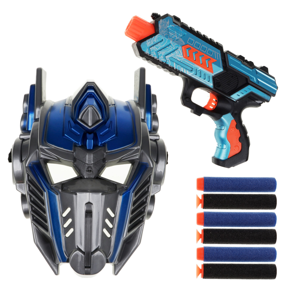 Lança Dardo Com 6 Dardos E Máscara Robô