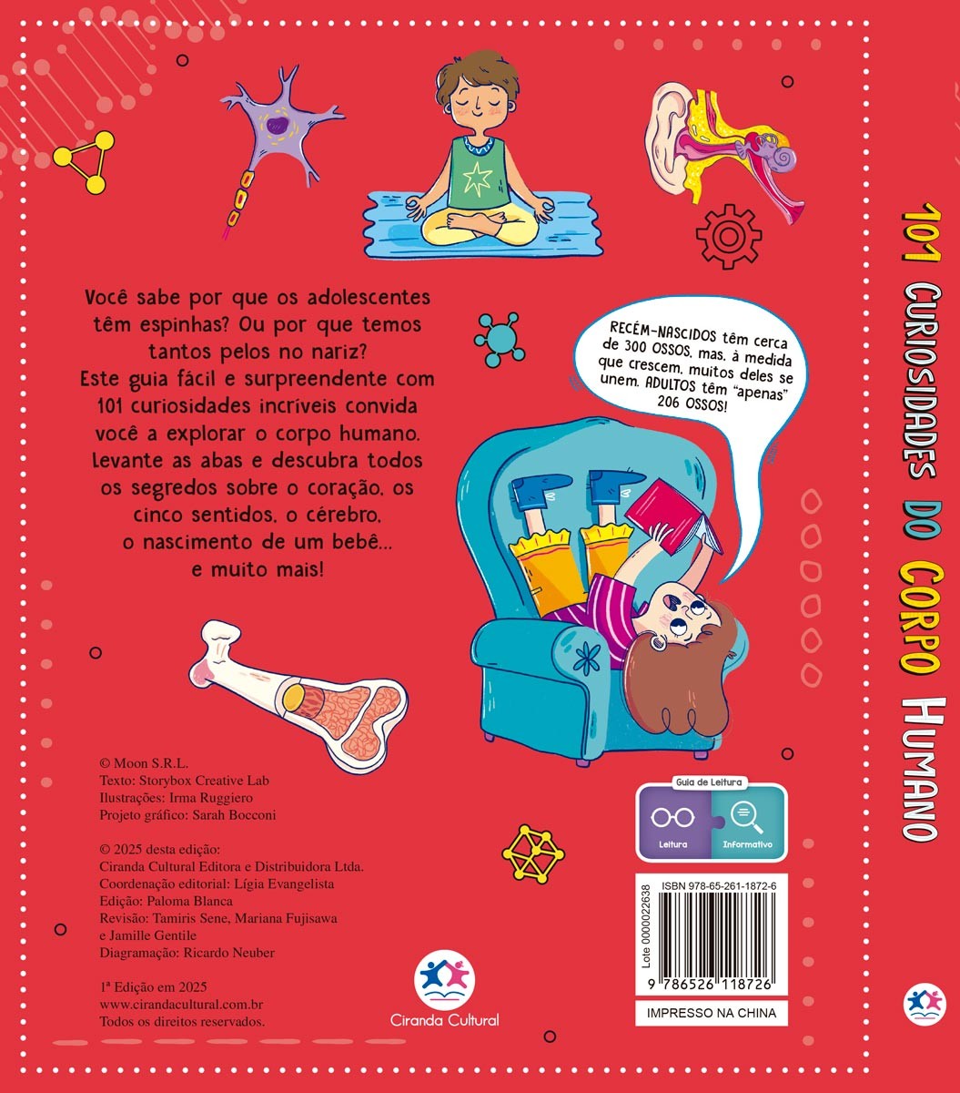 Você sabe por que os adolescentes têm espinhas? Ou por que temos tantos pelos no nariz? Este guia fácil e surpreendente com 101 curiosidades incríveis convida você a explorar o corpo humano. Levante as abas e descubra todos os segredos sobre o coração, os cinco sentidos, o cérebro, o nascimento de um bebê... e muito mais!