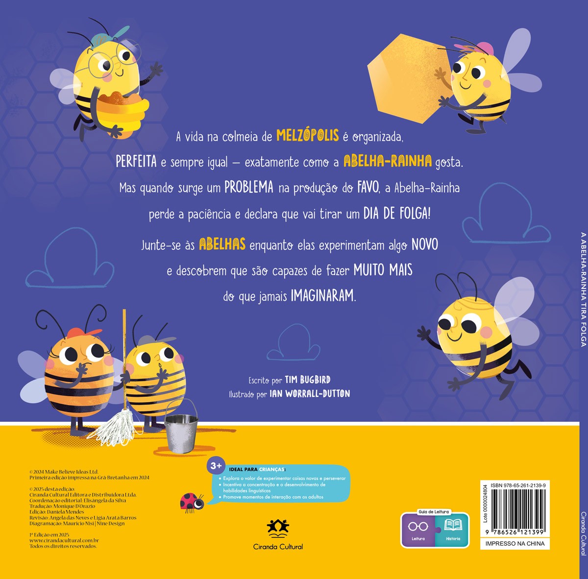 A vida na colmeia de MELZÓPOLIS é organizada, PERFEITA e sempre igual - exatamente como a ABELHA-RAINHA gosta. Mas quando surge um PROBLEMA na produção do FAVO, a Abelha-Rainha perde a paciência e declara que vai tirar um DIA DE FOLGA! Junte-se às ABELHAS enquanto elas experimentam algo NOVO e descobrem que são capazes de fazer MUITO MAIS do que jamais IMAGINARAM.