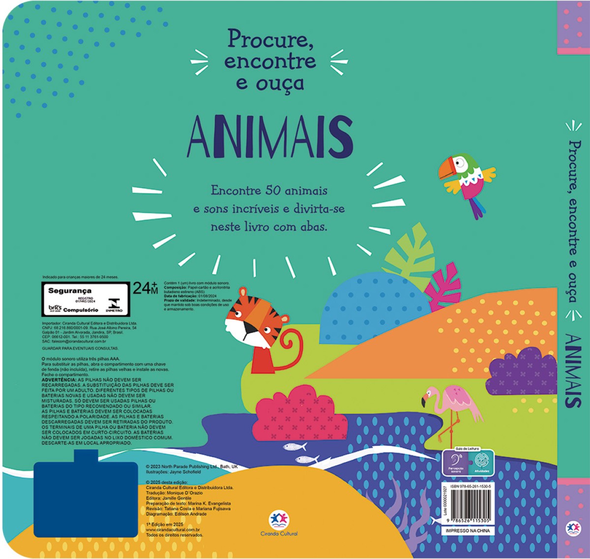 Procure e encontre muitas imagens de animais e ouça mais de 50 sons neste livro divertido. E não se preocupe: se a bateria acabar, é só trocar e a diversão continua sem parar!