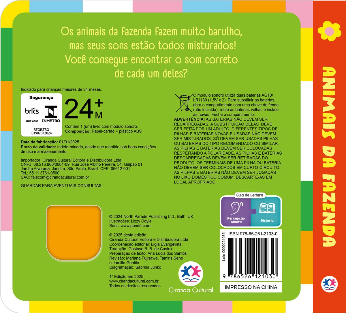 Neste livro interativo e colorido, a criança se diverte apertando os botões e combinando os sons com os animais certos da fazenda.