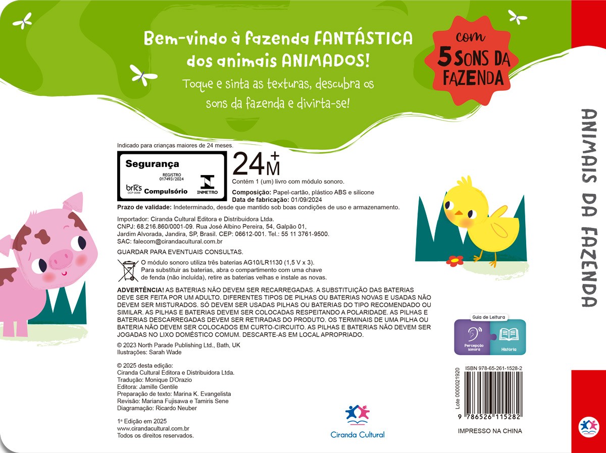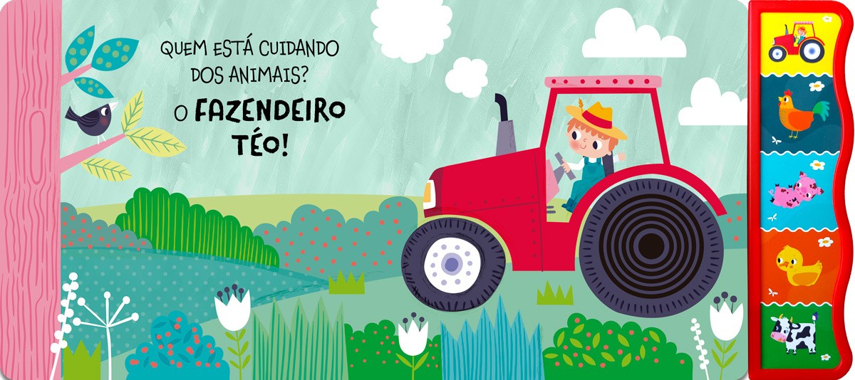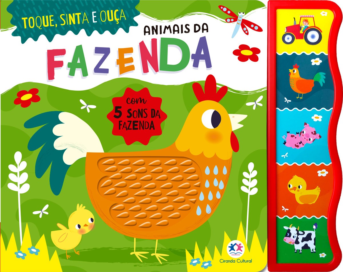 Bem-vindo à fazenda fantástica dos animais animados! Toque e sinta as texturas, descubra os sons da fazenda e divirta-se! Com 5 sons incríveis, conte a história e a cada página mostre o som para seu pequeno ou deixe ele descobrir, sentir tornando o momento ainda mais divertido e interativo. E não se preocupe: se a bateria acabar, é só trocar e a diversão continua sem parar!