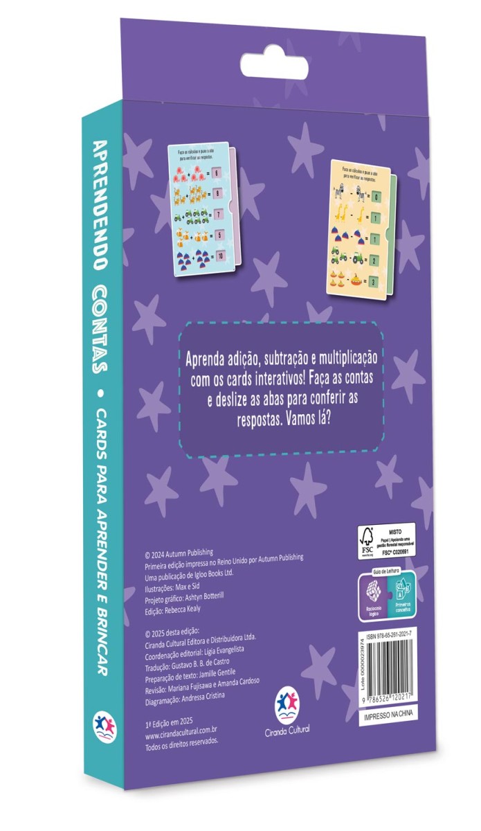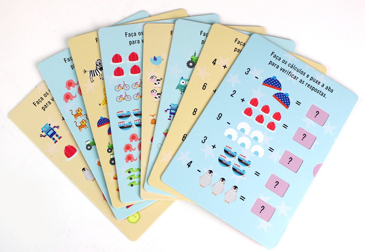 Com esses cards interativos, as crianças descobrem como é divertido somar, subtrair e multiplicar. Cada desafio vem acompanhado de abas deslizantes, que revelam as respostas de forma mágica e estimulante — como se o aprendizado fosse um jogo.