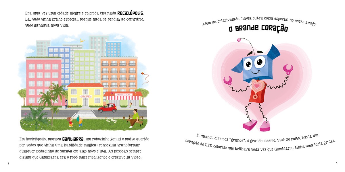 O robozinho Gambiarra adora transformar sucata em algo novo e útil. Com a amiga Sucatinha, forma uma dupla genial – verdadeiros embaixadores da cultura maker. Mas, agora, sua querida Reciclópolis precisa de ajuda para voltar a ser um lugar limpinho e cheio de vida.