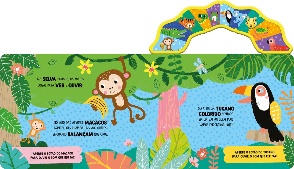 Explore os sons da selva e conheça vários animais amigáveis neste colorido livro sonoro!
