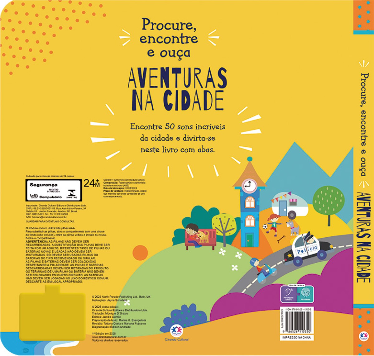 Procure e encontre muitas imagens e ouça mais de 50 sons neste livro divertido. E não se preocupe: se a bateria acabar, é só trocar e a diversão continua sem parar!
