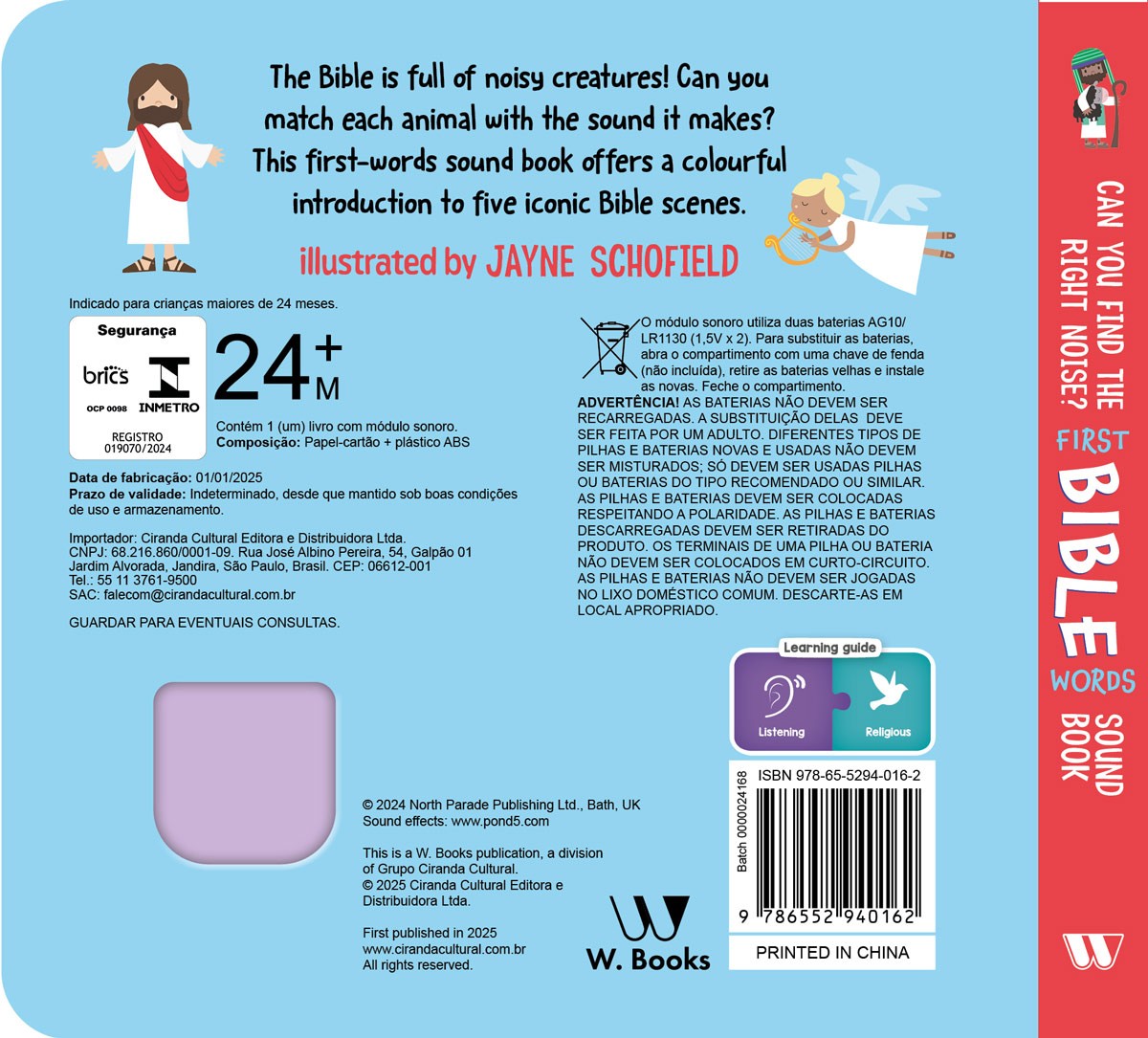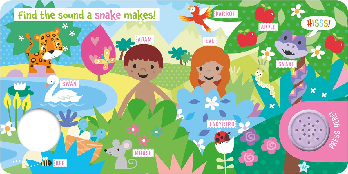 The Bible is full of noisy creatures! Can you match each animal with the sound it makes? This first-words sound book offers a colourful introduction to five iconic Bible scenes.