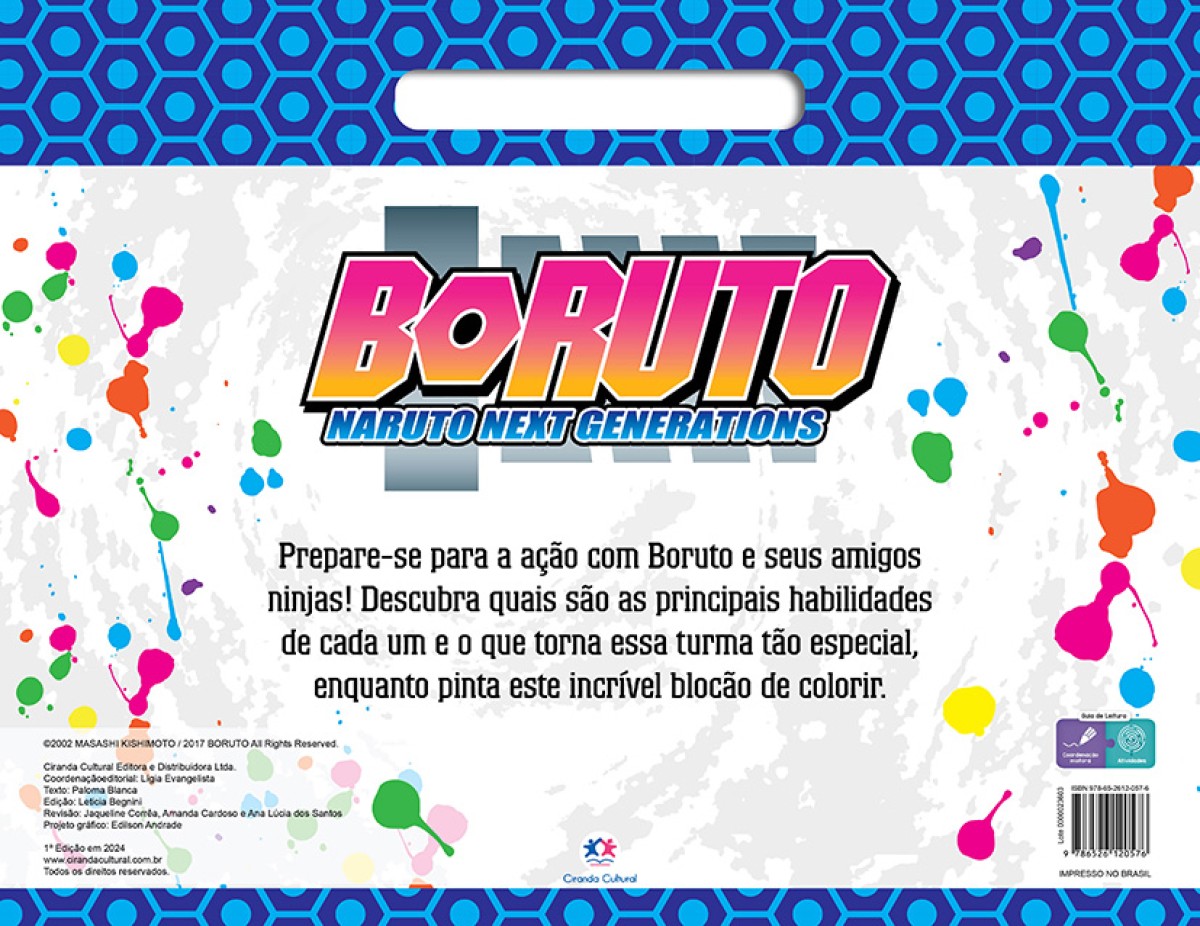Prepare-se para a ação com Boruto e seus amigos ninjas! Enquanto pinta este incrível blocão de colorir, descubra quais são as principais habilidades de cada um e o que torna essa turma tão especial.