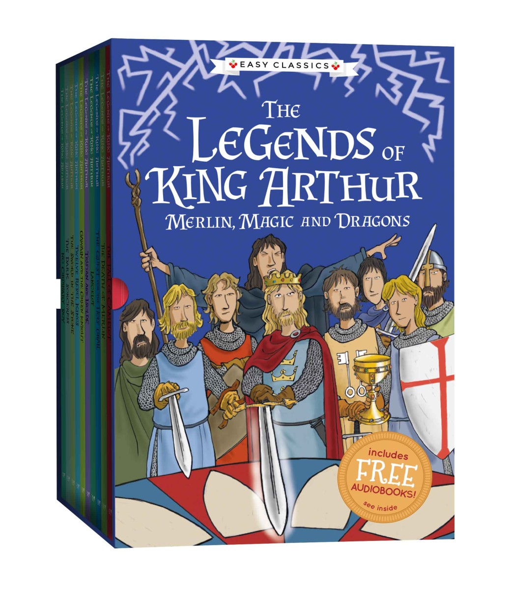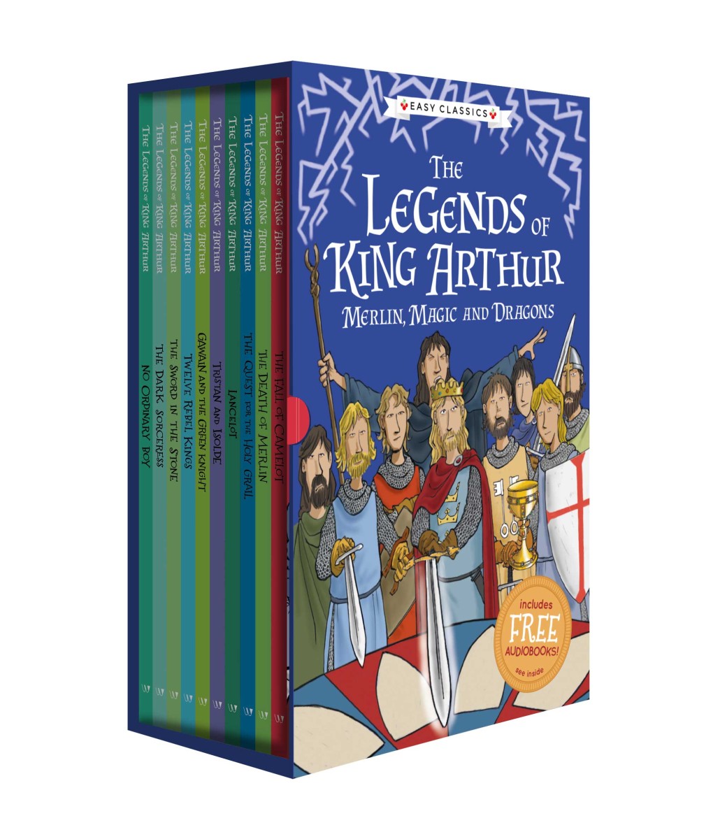 The legends of king Arthur - Merlin, magic and dragons: The fall of Camelot, The death of Merlin, The quest for the Holy Grail, Lancelot, Tristan and Isolde, Gawain and the Green Knight, Twelve rebel kings, The sword in the stone, The dark sorceress and No ordinary boy.