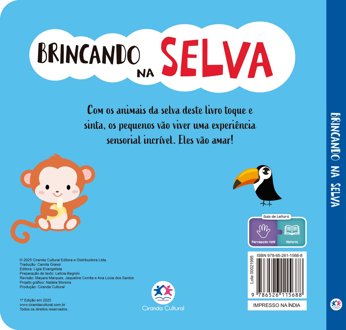 Prepare-se para uma viagem pela selva com o livro sensorial Brincando na Selva! Cada página revela a barriguinha de animais incríveis, como a raposinha, com texturas especiais para que as crianças possam sentir a suavidade e a firmeza de suas barriguinhas. Ao tocar e explorar, os pequenos aprendem sobre os animais selvagens e seus habitats, criando uma experiência sensorial rica e educativa.