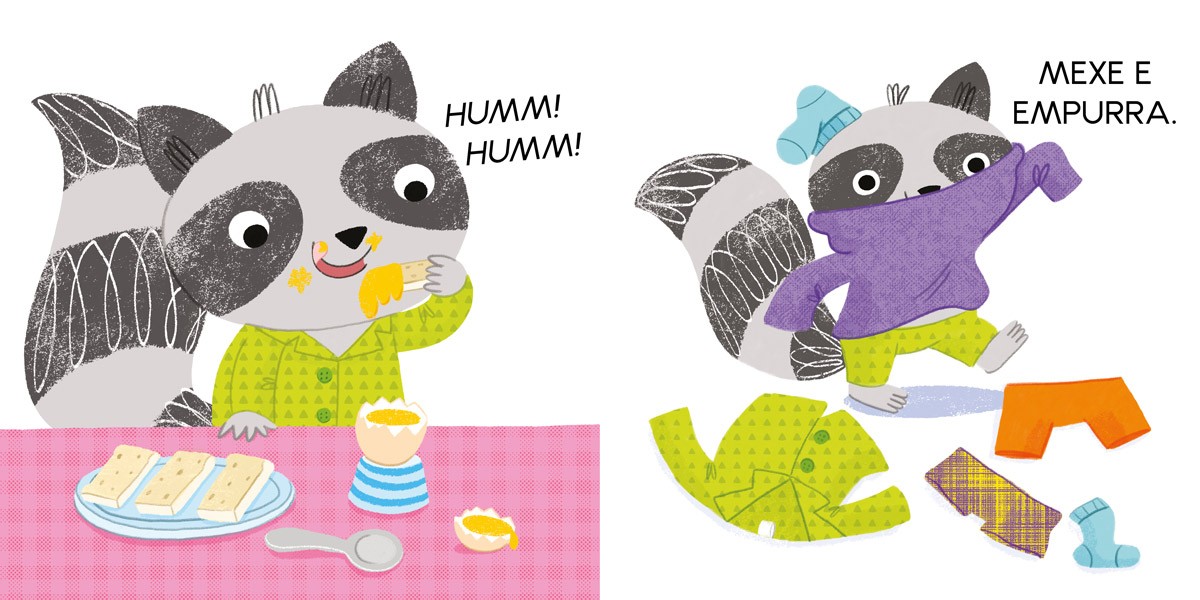Viva a alegria das pequenas descobertas ao seguir os passos do guaxinim em um dia divertido em casa.
