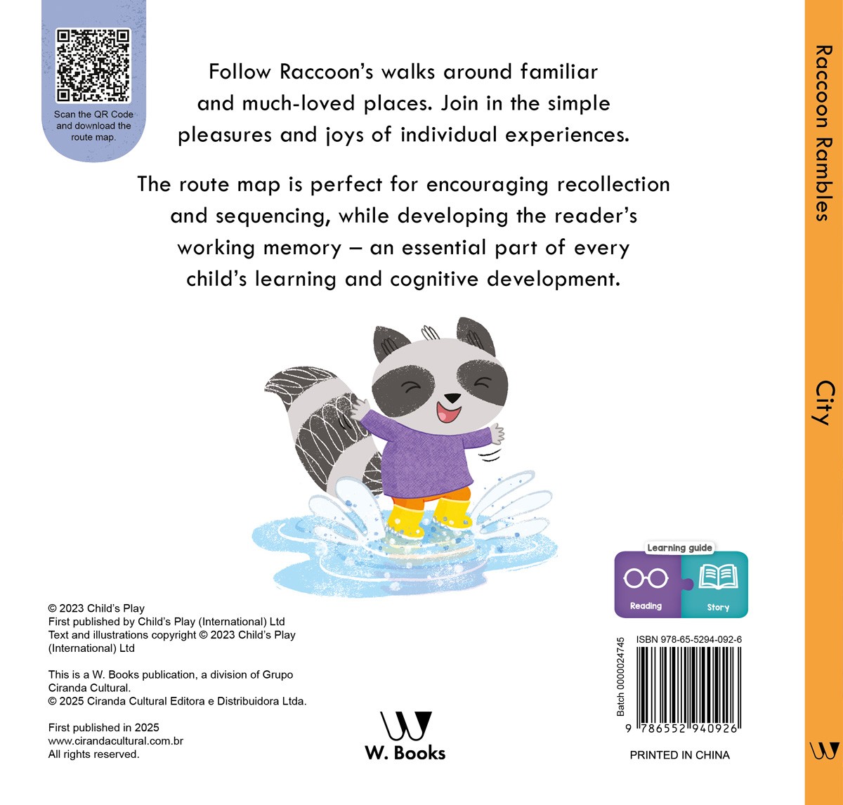 Follow Raccoon’s walks around familiar and much-loved places. Join in the simple pleasures and joys of individual experiences.