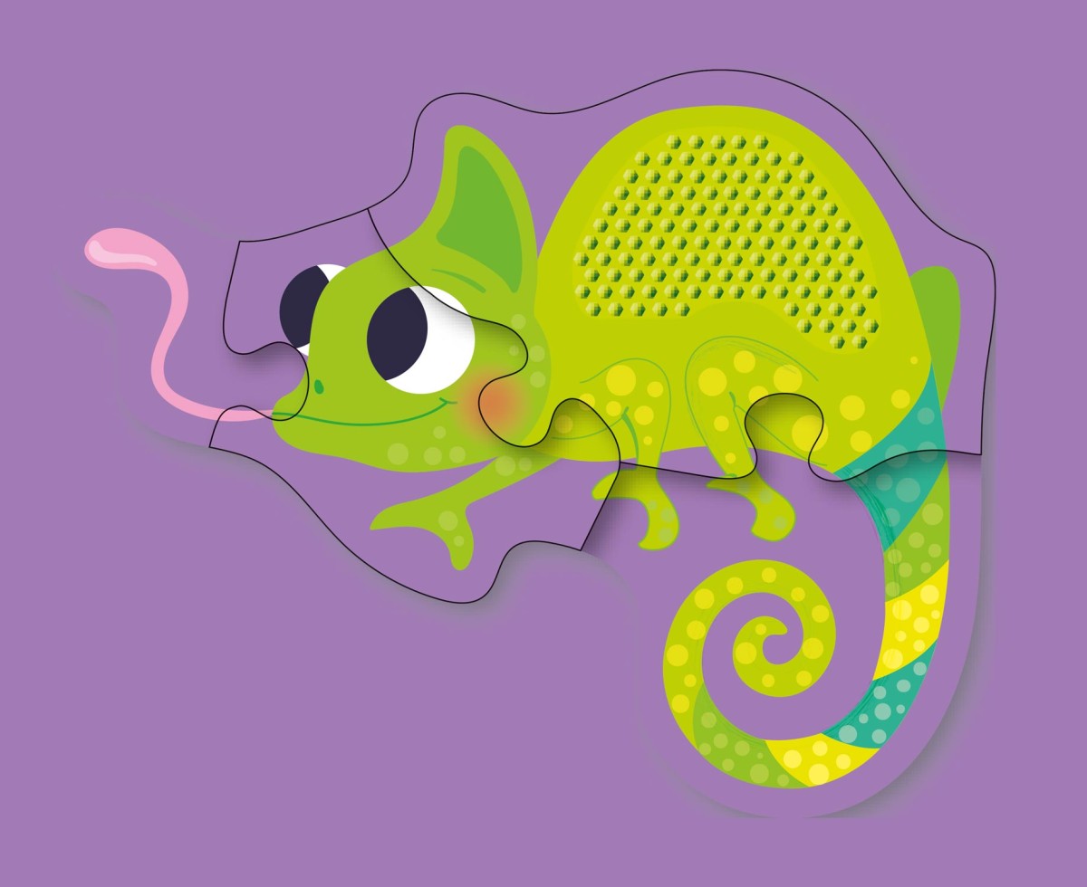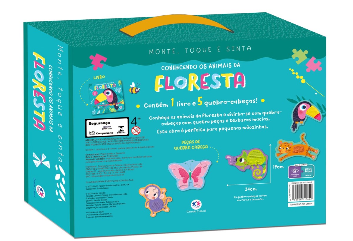 Conheça os animais da floresta e divirta-se com quebra-cabeças com quatro peças e texturas macias. Esta obra é perfeita para pequenas mãozinhas.