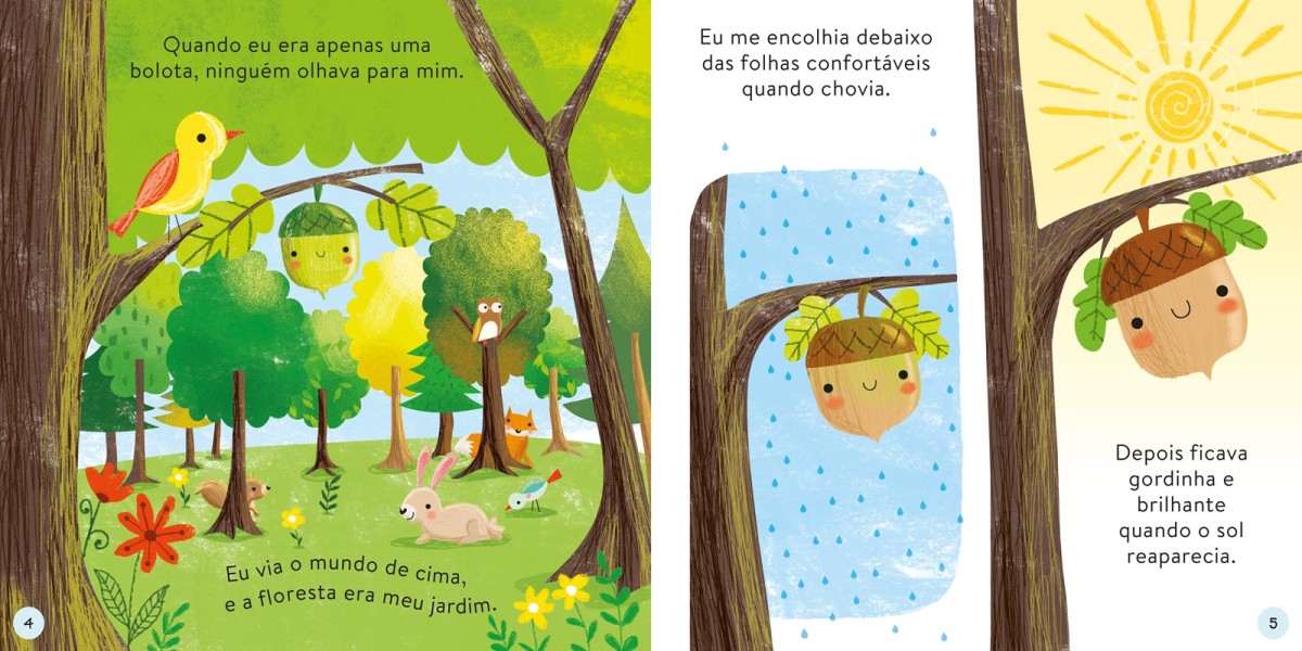 Descubra histórias da floresta com quatro belos contos sobre a natureza, perfeitos para a hora de dormir. Conheça uma bolota brilhante, uma coruja sábia, um pinheirinho corajoso, um cogumelo valente e aprenda como a vida se desenrola na floresta.