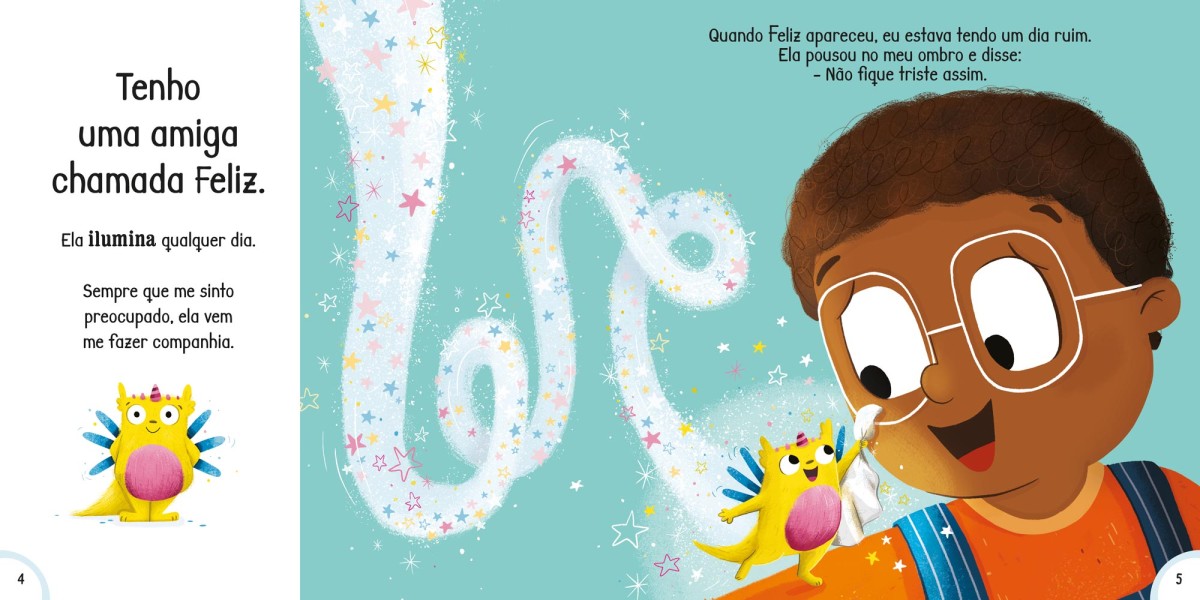 Conheça um amigo mágico imaginário, sorria com um elefantinho e muito mais com este livro de histórias alegres, coloridas e deliciosamente felizes!