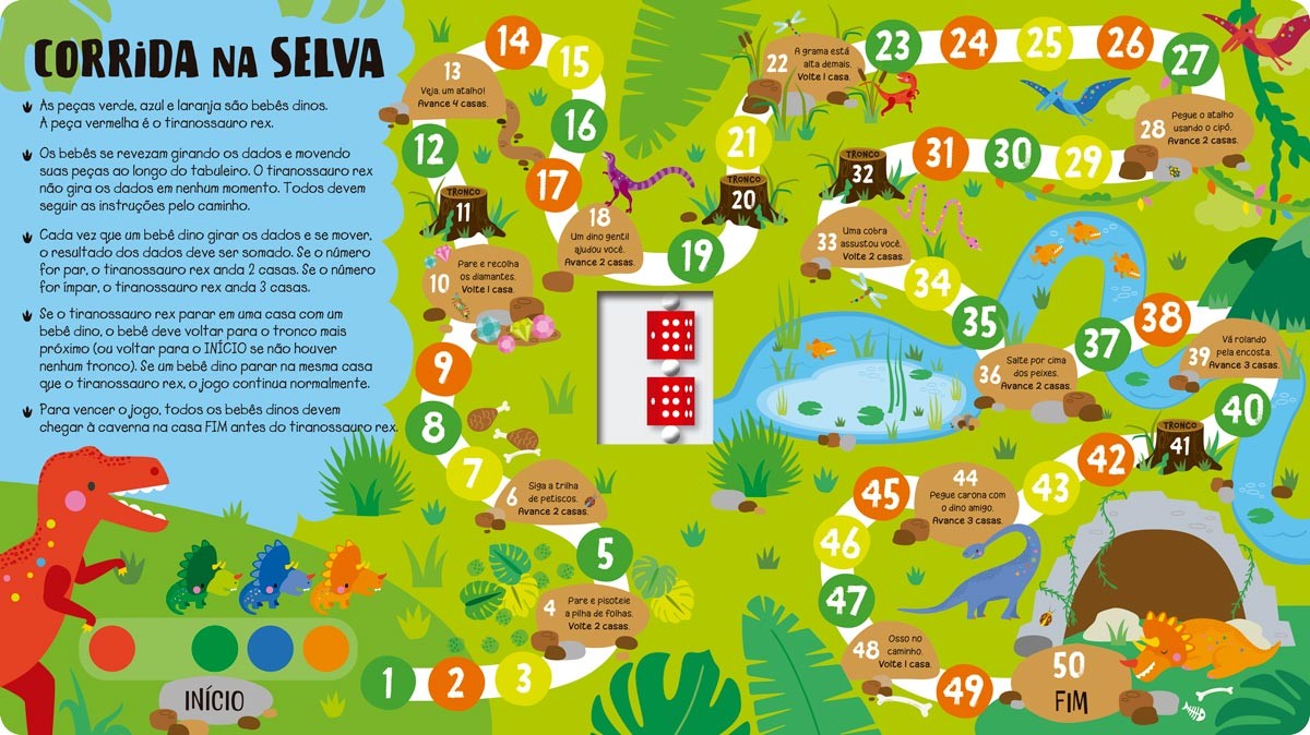 Divirta-se brincando com os jogos deste livro que exploram as cores, os números e muito mais. Venha embarcar em uma corrida com os Velocirraptors, tentar escapar das garras do Tiranossauro rex e ter muitas outras aventuras com esses jogos divertidos.