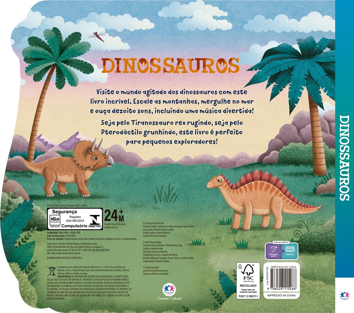 Prepare-se para uma aventura jurássica cheia de sons e surpresas! Neste livro interativo, as crianças são convidadas a explorar o mundo dos dinossauros de um jeito divertido e educativo. Entre montanhas, mares e selvas pré-históricas, cada página traz descobertas incríveis e 18 sons diferentes — de rugidos assustadores a uma música animada que vai fazer todo mundo dançar. Ideal para pequenos curiosos e amantes dos dinossauros, este livro transforma a leitura em uma experiência sensorial. E o melhor: quando a bateria acabar, é só trocar e continuar a diversão! E não se preocupe: se a bateria acabar, é só trocar e a diversão continua sem parar!