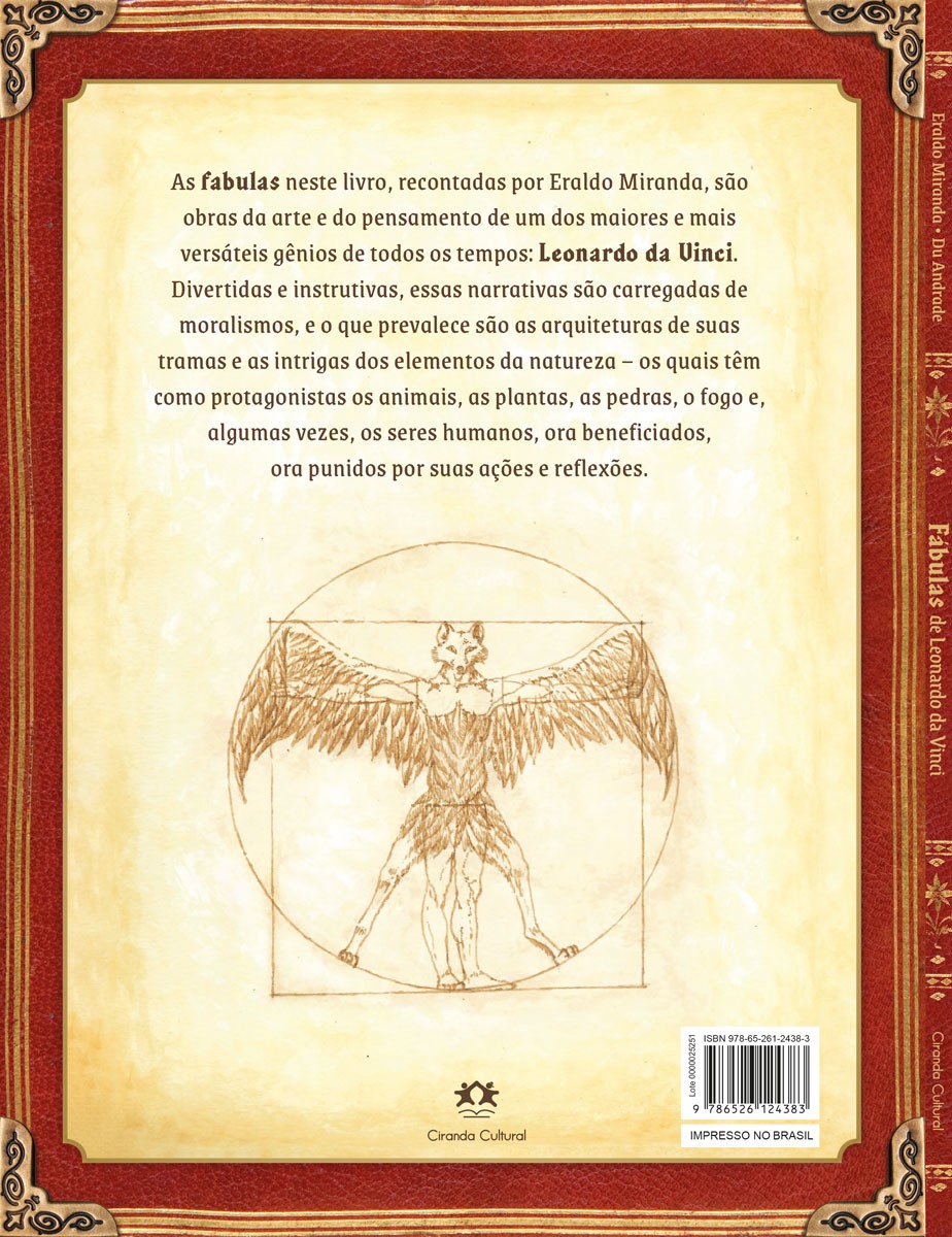 As fábulas neste livro, recontadas por Eraldo Miranda, são obras da arte e do pensamento de um dos maiores e mais versáteis gênios de todos os tempos: Leonardo da Vinci.