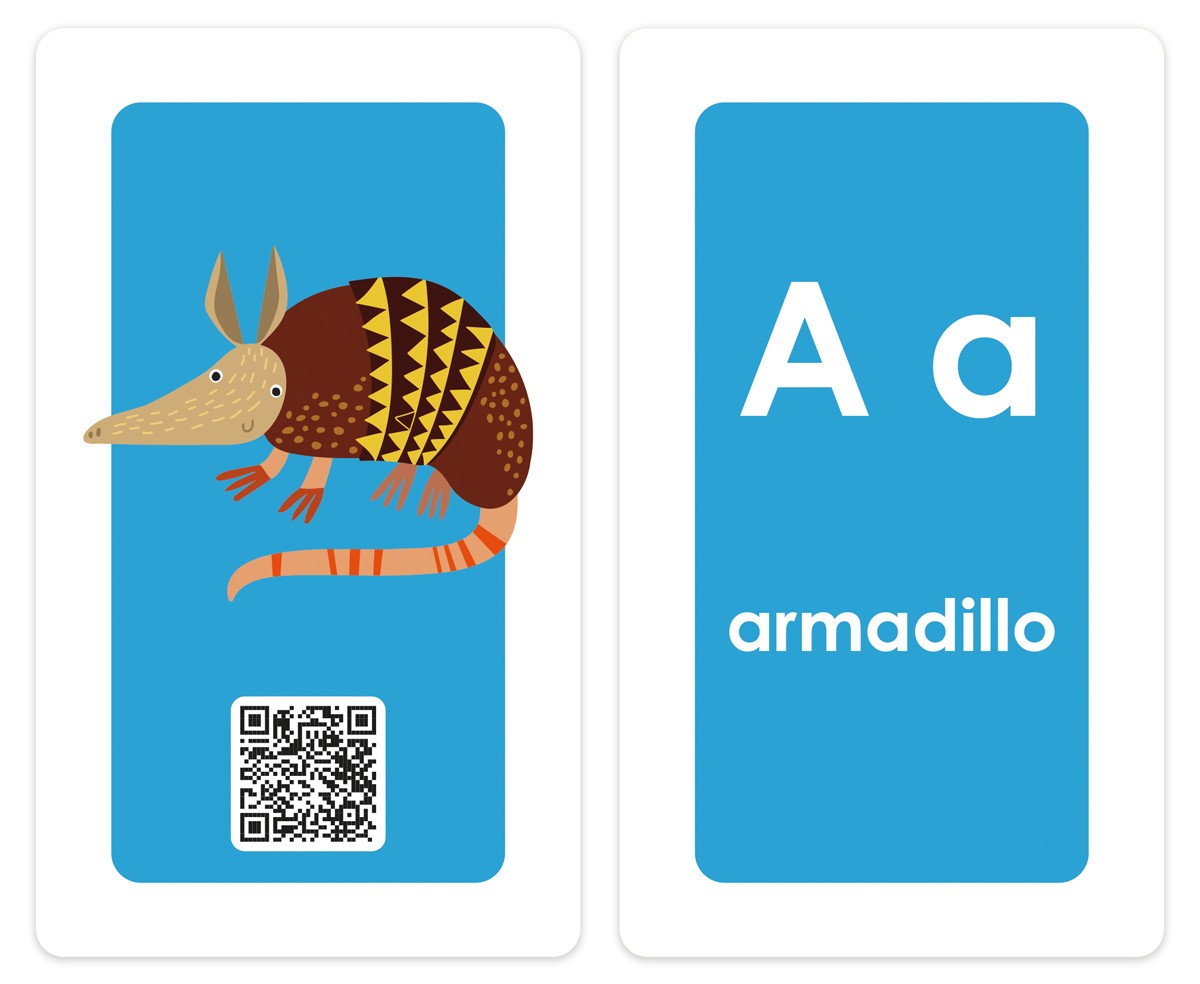 Help kids learn the alphabet with these flash cards! Match pictures with words starting with the same letter, and listen to the English pronunciation via the QR code.