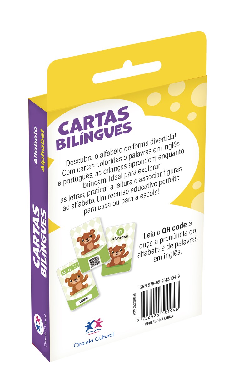 O uso de cartas bilíngues com figuras e palavras é uma ferramenta eficaz para o aprendizado de inglês. A associação entre imagens e palavras facilita a memorização e promove um aprendizado natural, tornando o processo mais interativo, dinâmico e visualmente estimulante.