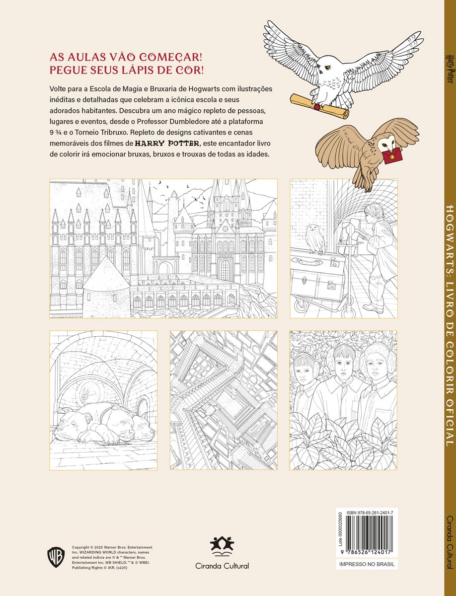 Este volume especial da coleção Casas de Hogwarts reúne personagens, lugares e cenas que representam Grifinória, Sonserina, Lufa-Lufa e Corvinal, em uma celebração vibrante de tudo o que torna o universo mágico tão inesquecível. Dos rostos conhecidos como Alvo Dumbledore e Harry Potter até os detalhes encantadores dos filmes, cada página é um convite à criatividade e à nostalgia.