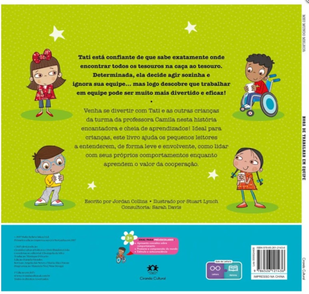 Meu Mundo Melhor - Hora de Trabalhar em Equipe Tati está confiante de que sabe exatamente onde encontrar todos os tesouros na caça ao tesouro. Determinada, ela decide agir sozinha e ignora sua equipe… mas logo descobre que trabalhar em equipe pode ser muito mais divertido e eficaz! Venha se divertir com Tati e as outras crianças da turma da professora Camila nesta história encantadora e cheia de aprendizados! Ideal para crianças, este livro ajuda os pequenos leitores a entenderem, de forma leve e envolvente, como lidar com seus próprios comportamentos enquanto aprendem o valor da cooperação.