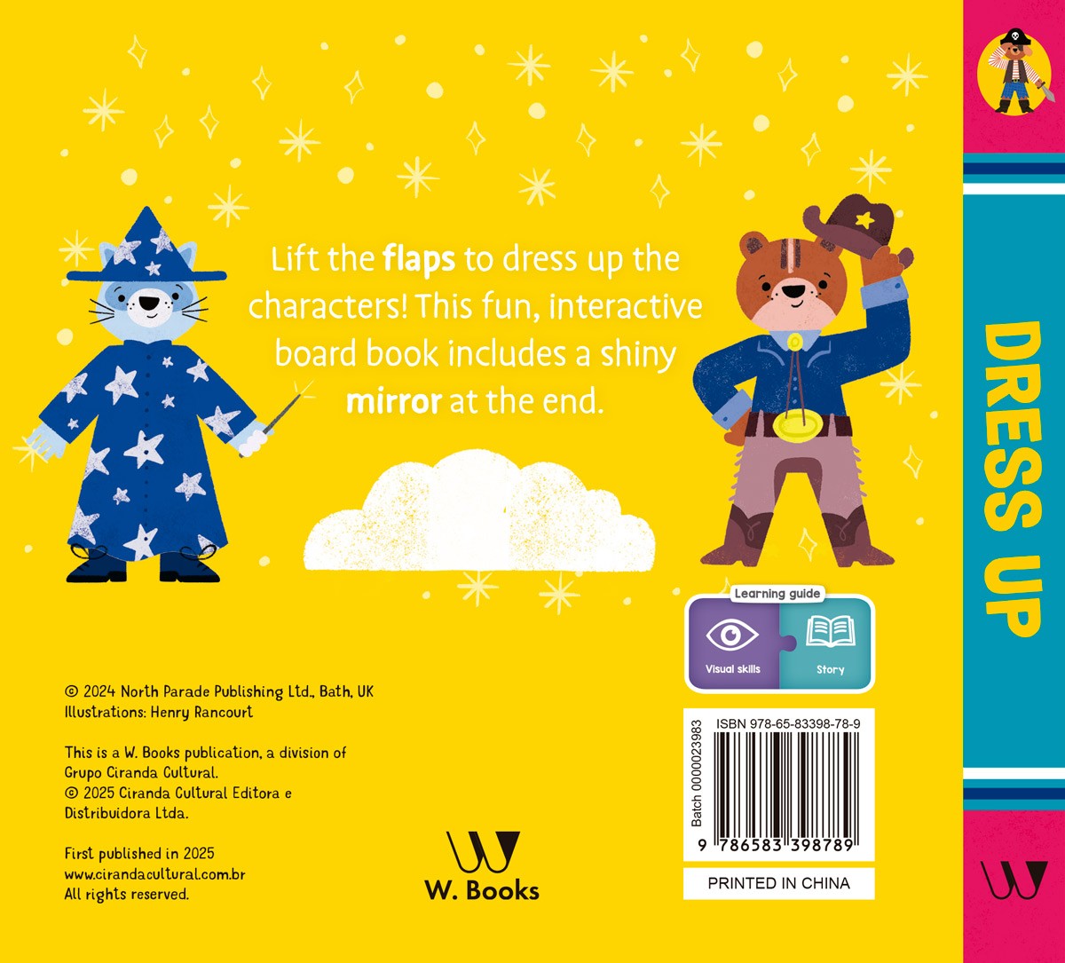 Levante as abas para fantasiar muitos personagens neste livro interativo. Contém um espelho para você brincar e se divertir ainda mais.
