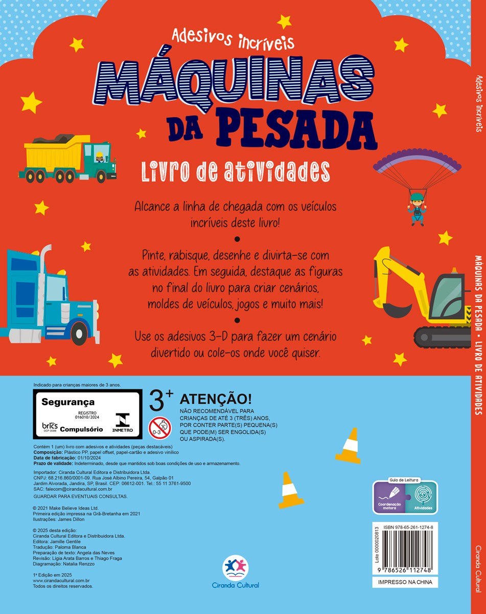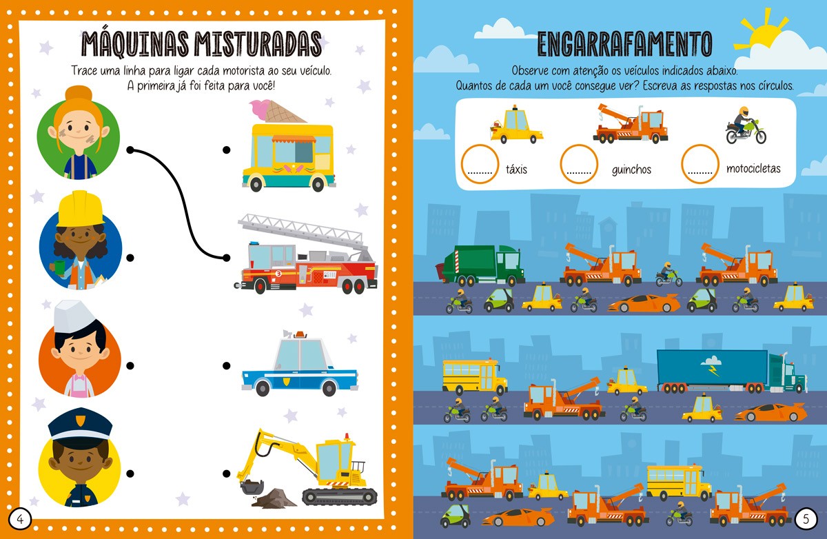 Alcance a linha de chegada com os veículos incríveis deste livro! Pinte, rabisque, desenhe e divirta-se com as atividades. Em seguida, destaque as figuras no final do livro para criar cenários, moldes de veículos, jogos e muito mais! Use os adesivos 3-D para fazer um cenário divertido ou cole-os onde você quiser.