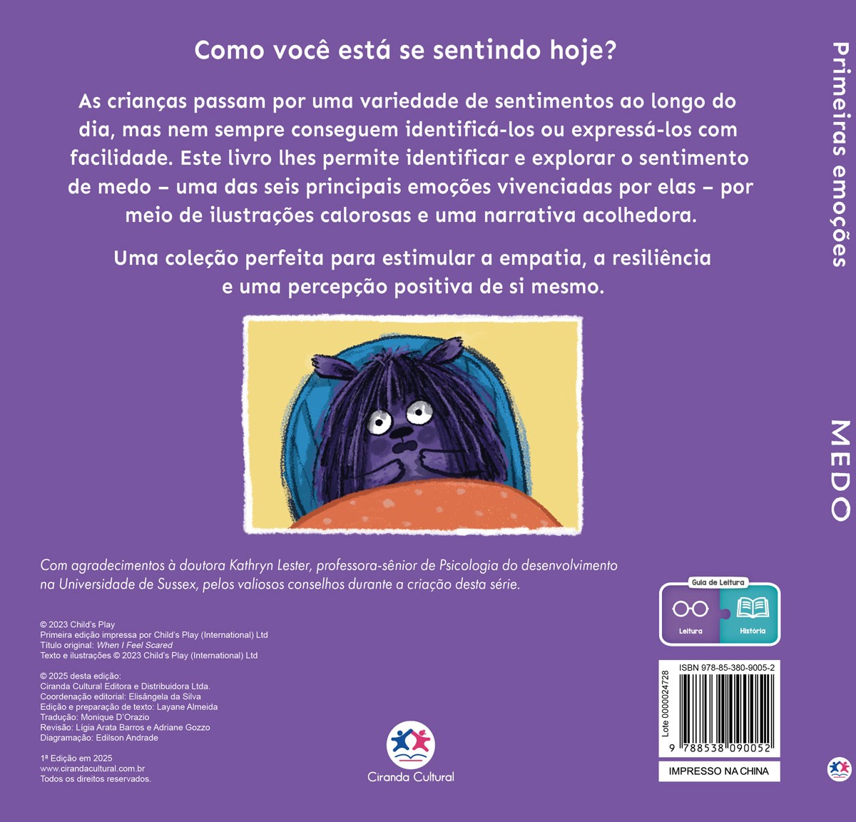 As crianças passam por uma variedade de sentimentos ao longo do dia, mas nem sempre conseguem identificá-los ou expressá-los com facilidade. Este livro lhes permite identificar e explorar o sentimento de medo – uma das seis principais emoções vivenciadas por elas – por meio de ilustrações calorosas e uma narrativa acolhedora.