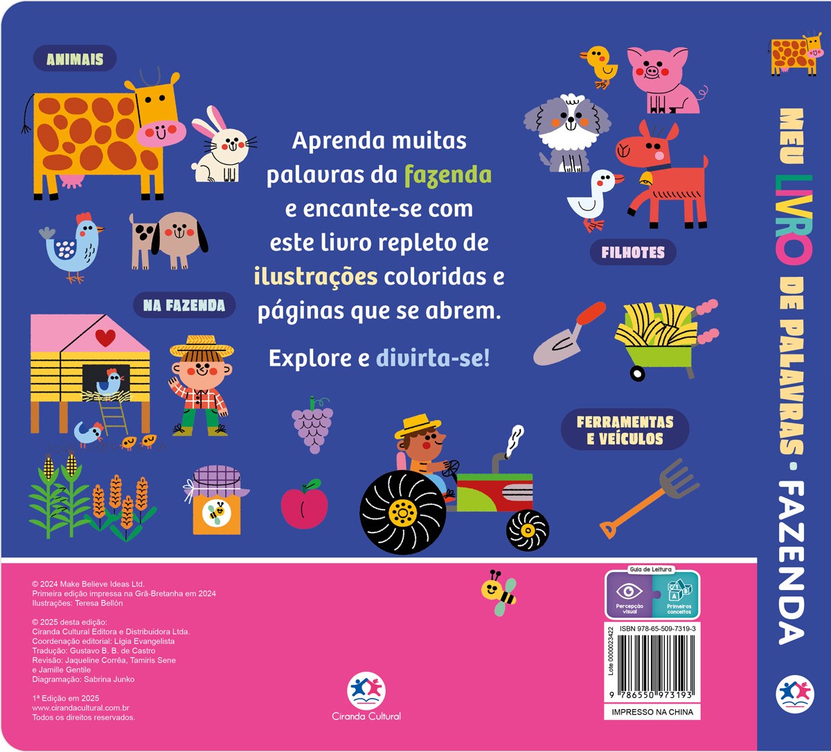 Aprenda muitas palavras da fazenda e encante-se com este livro repleto de ilustrações coloridas e páginas que se abrem. Explore e divirta-se!