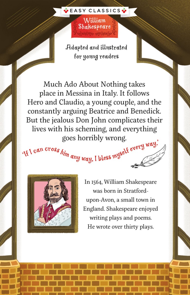 Much Ado About Nothing takes place in Messina in Italy. It follows Hero and Claudio, a young couple, and the constantly arguing Beatrice and Benedick. But the jealous Don John complicates their lives with his scheming, and everything goes horribly wrong.