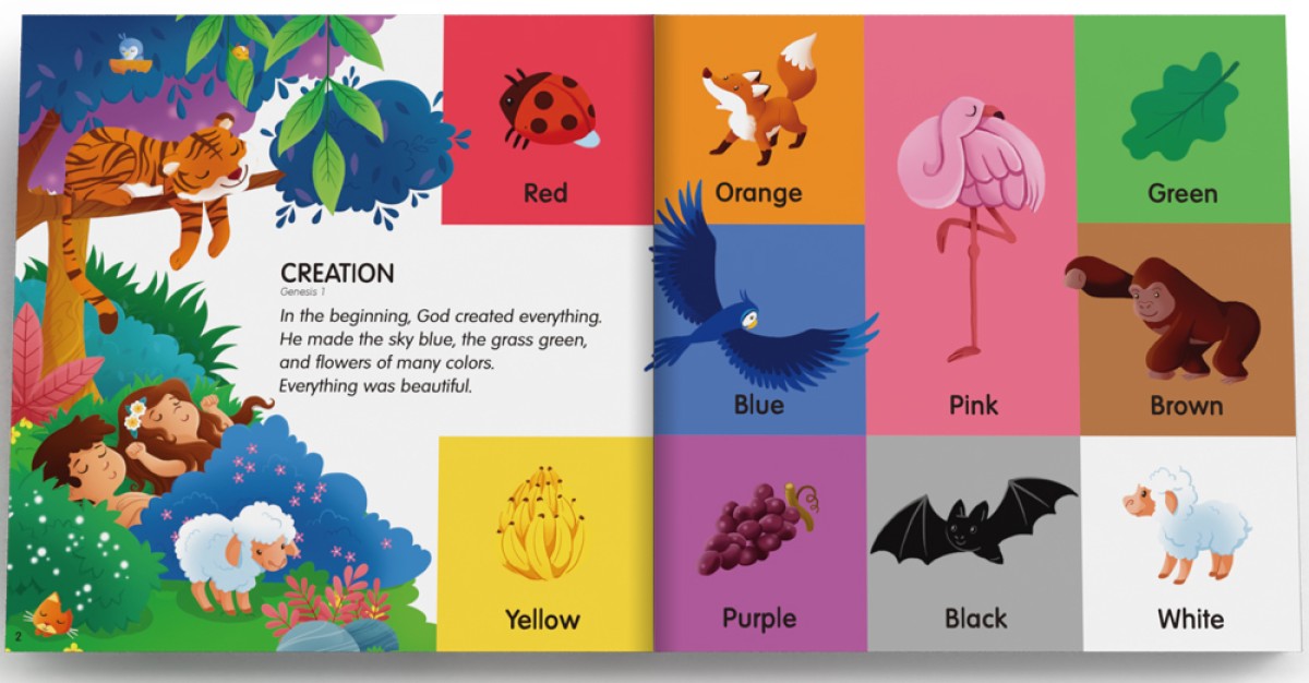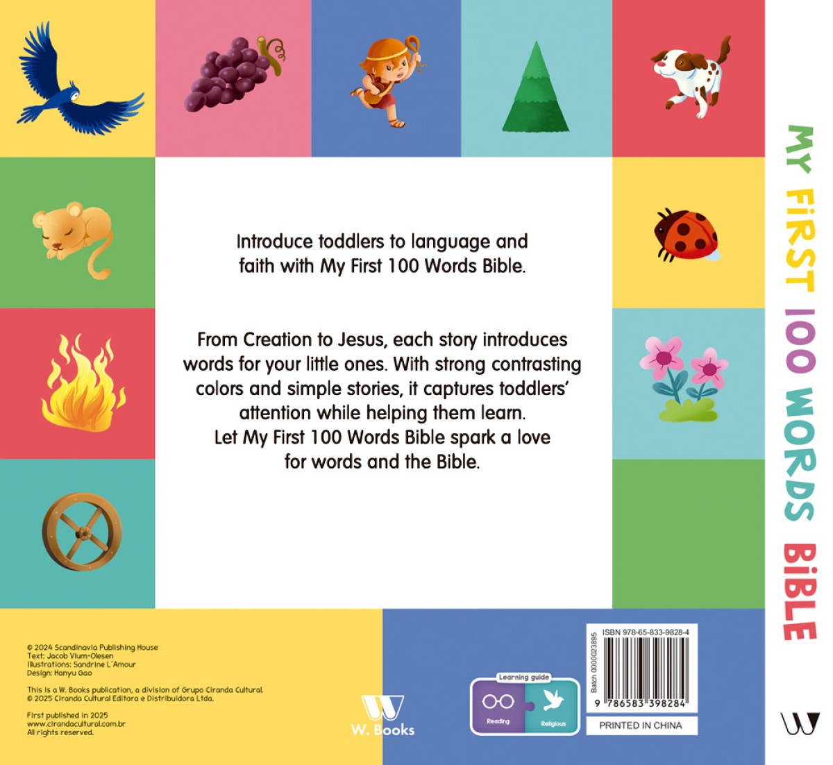 Introduce toddlers to language and faith with My First 100 Words Bible.From Creation to Jesus, each story introduces words for your little ones. With strong contrasting colors and simple stories, it captures toddlers’ attention while helping them learn. Let My First 100 Words Bible spark a love for words and the Bible.
