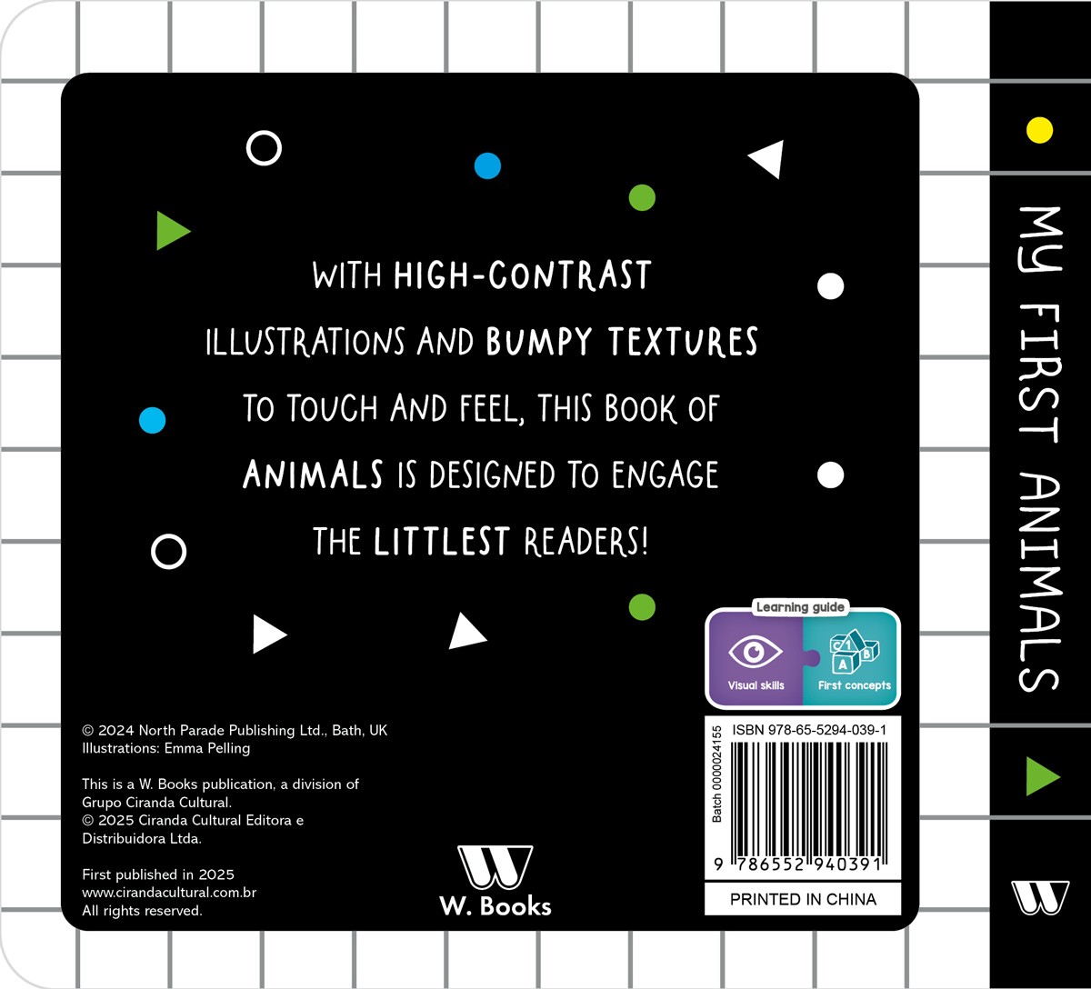 With high-contrast illustrations and bumpy textures to touch and feel, this animal book is designed to engage young readers by developing perception and cognition!
