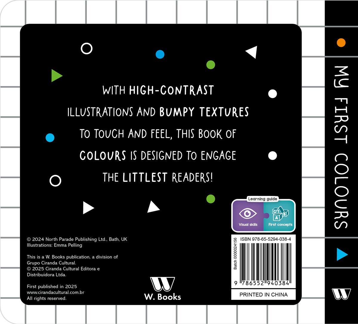 With high-contrast illustrations and bumpy textures to touch and feel, this colors book is designed to engage young readers by developing perception and cognition!