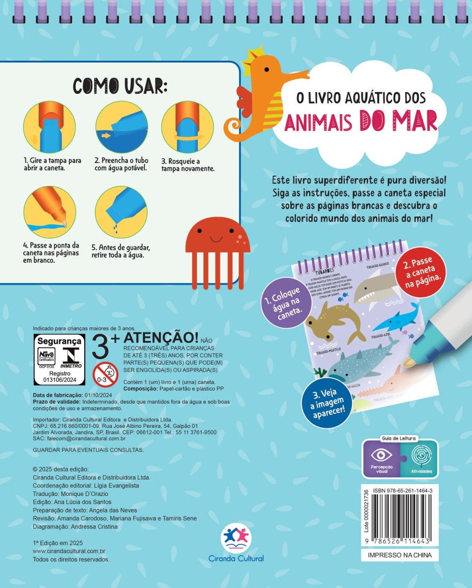 Este livro superdiferente é pura diversão! Siga as instruções, passe a caneta especial sobre as páginas brancas e descubra o mundo dos animais do mar!