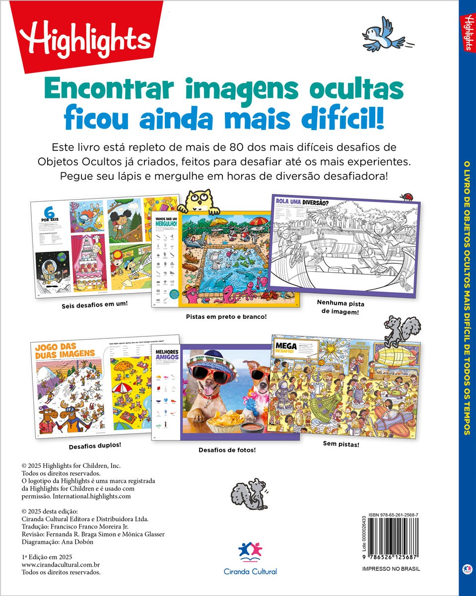 Este livro está recheado de desafios incríveis para quem adora procurar objetos escondidos. São mais de 1.500 itens camuflados em cenas superdetalhadas, prontos para confundir até os caçadores mais experientes! Com mais de 80 dos enigmas mais difíceis já criados, cada página é um convite para testar sua atenção e se divertir por horas. Pegue seu lápis, respire fundo e embarque nessa aventura cheia de descobertas!