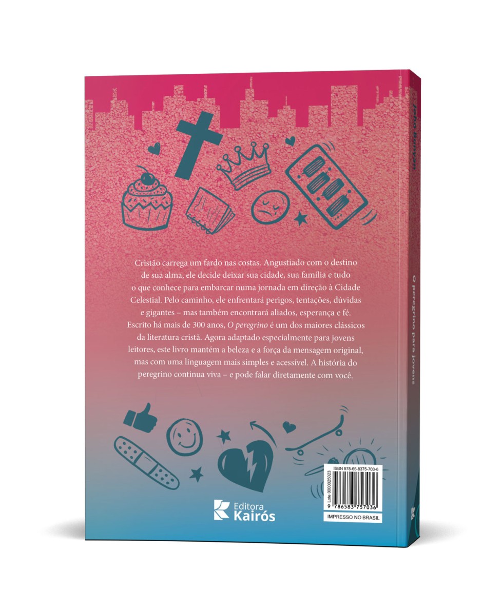 Cristão carrega um fardo nas costas. Angustiado com o destino de sua alma, ele decide deixar sua cidade, sua família e tudo o que conhece para embarcar numa jornada em direção à Cidade Celestial. Pelo caminho, ele enfrentará perigos, tentações, dúvidas e gigantes – mas também encontrará aliados, esperança e fé. Escrito há mais de 300 anos, "O peregrino" é um dos maiores clássicos da literatura cristã. Agora adaptado especialmente para jovens leitores, este livro mantém a beleza e a força da mensagem original, mas com uma linguagem mais simples e acessível. A história do peregrino continua viva – e pode falar diretamente com você.