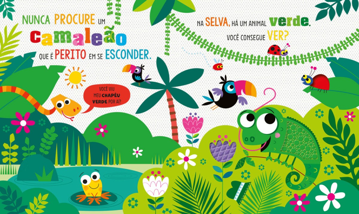 O camaleão adora se esconder! Será que você consegue encontrá-lo por aí? Descubra neste divertido livro com rimas, enquanto toca e sente o colorido camaleão.
