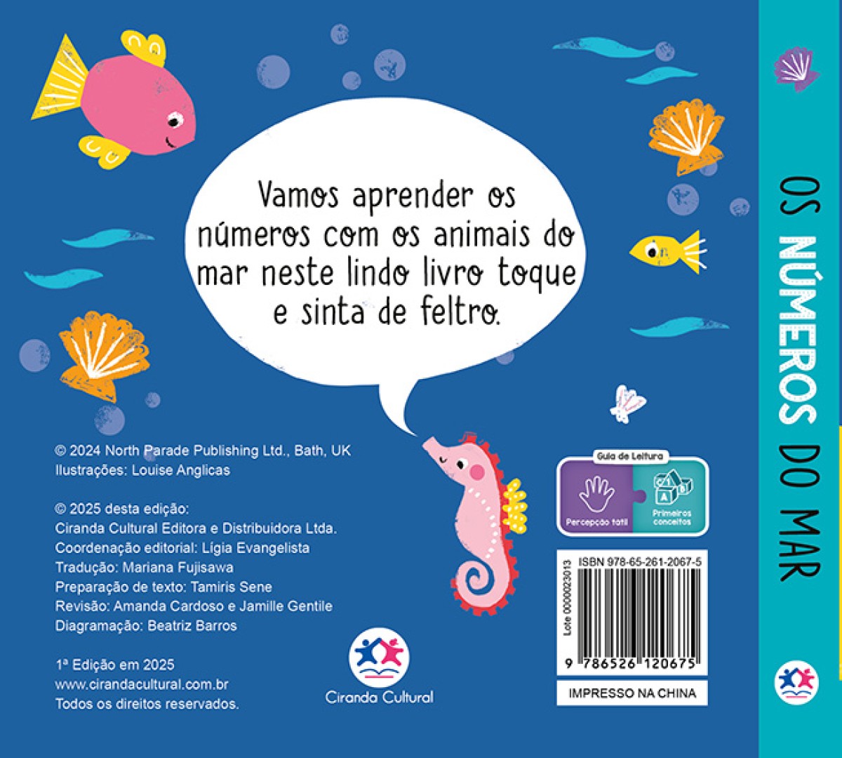 Vamos aprender os números com os animais do mar neste lindo livro toque e sinta de feltro.