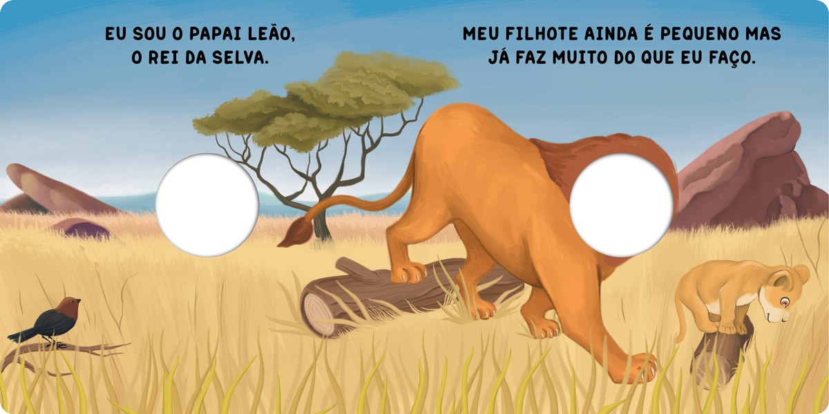 Explore o dia do papai leão e seu filhote na savana neste lindo livro. Com dedoches para interagir de maneira divertida com a narrativa, este livro é uma ótima oportunidade de pais e filhos desfrutarem de um momento de leitura juntos.