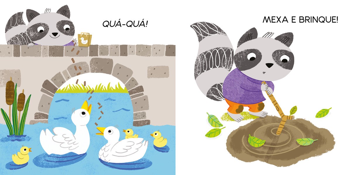 Viva a alegria das pequenas descobertas ao seguir os passos do guaxinim em um dia divertido pelo parque.