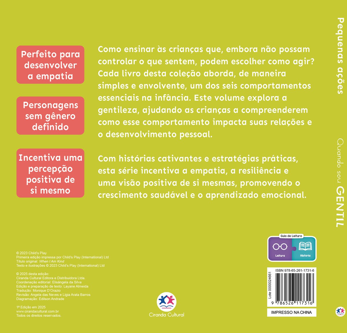 Cada livro desta coleção aborda, de maneira simples e envolvente, um dos seis comportamentos essenciais na infância. Este volume explora a gentileza, ajudando as crianças a compreenderem como esse comportamento impacta suas relações e o desenvolvimento pessoal.