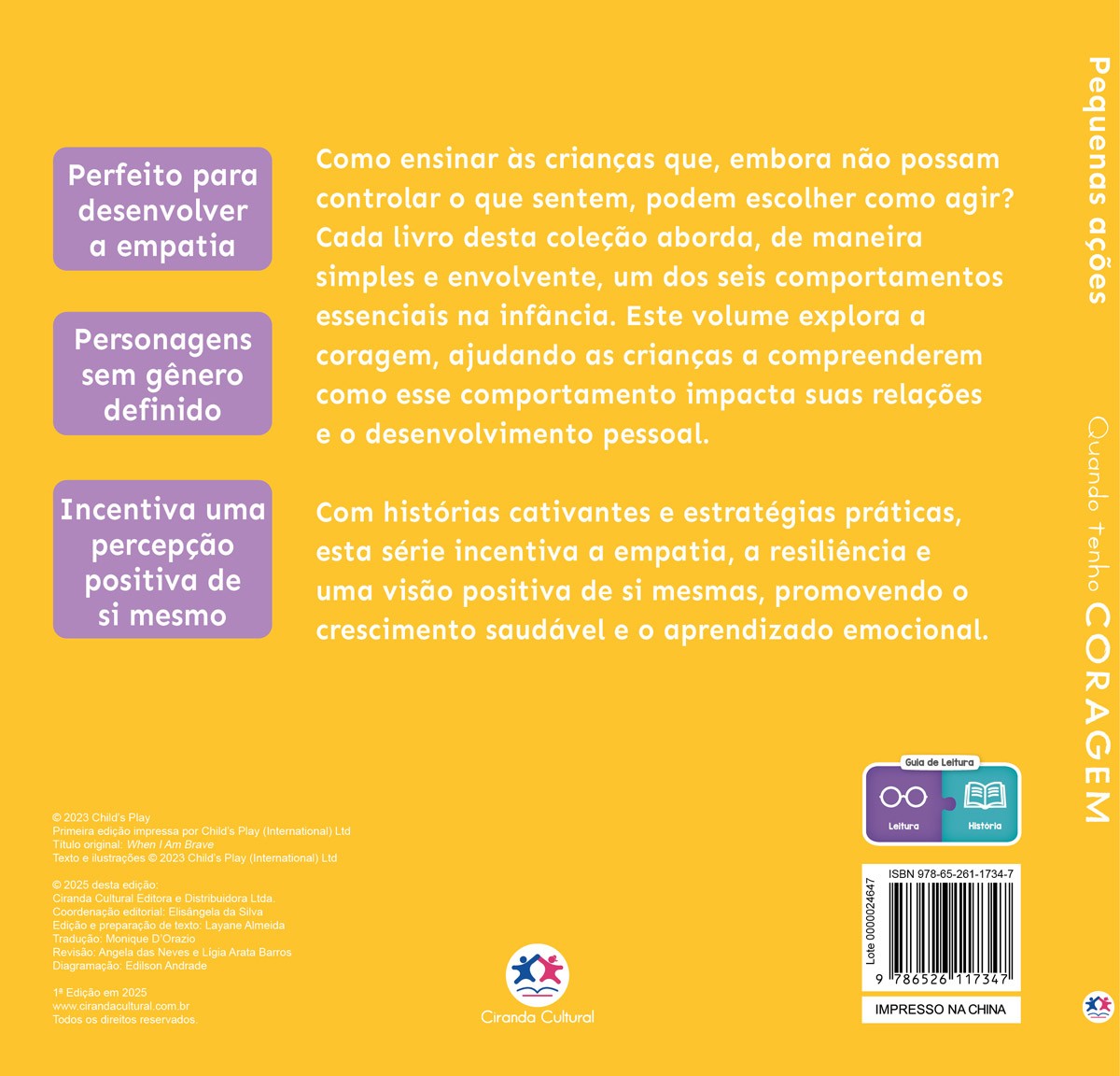 Cada livro desta coleção aborda, de maneira simples e envolvente, um dos seis comportamentos essenciais na infância. Este volume explora a coragem, ajudando as crianças a compreenderem como esse comportamento impacta suas relações e o desenvolvimento pessoal.