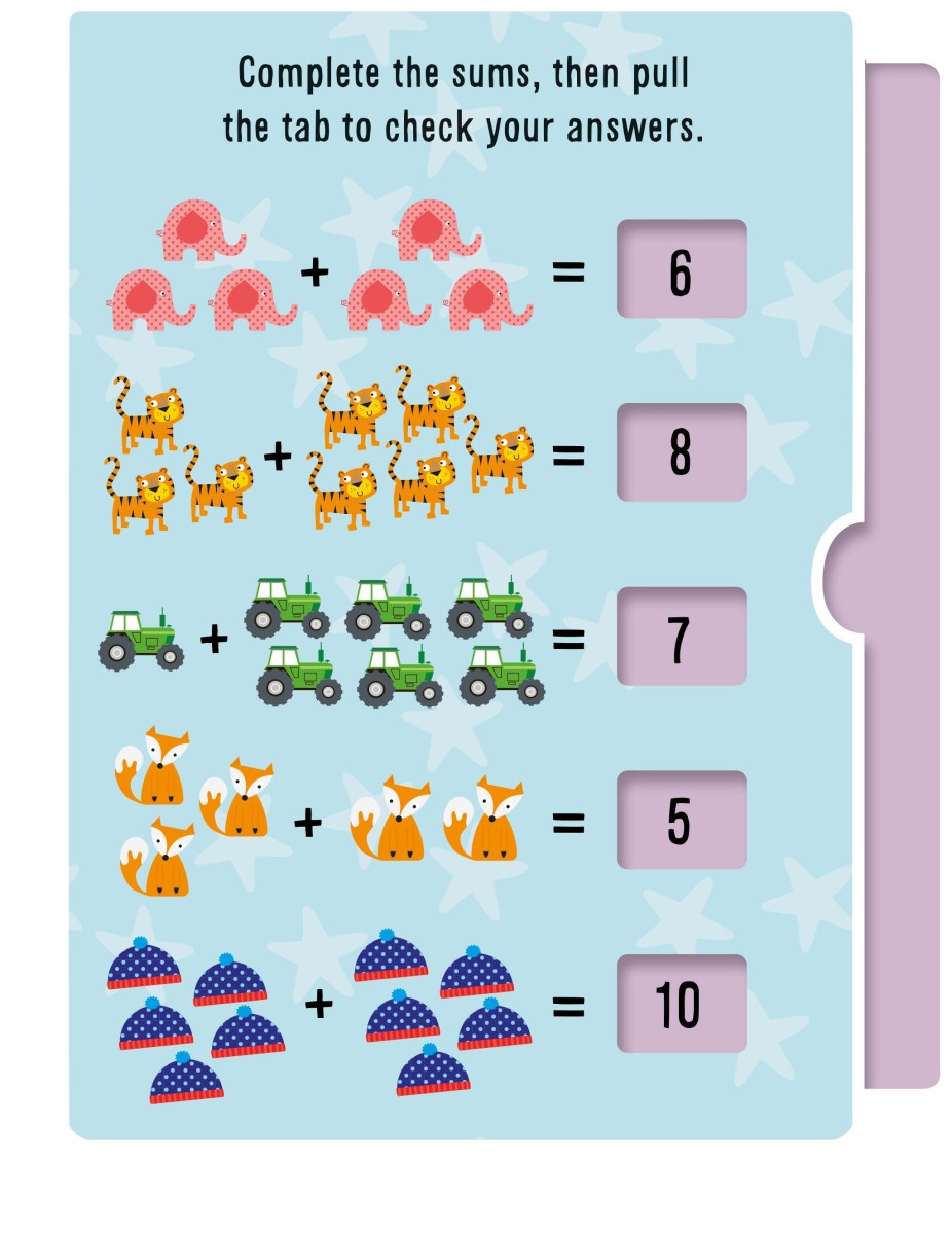 • Slide the panel to reveal answers and complete each sum — it’s like magic!