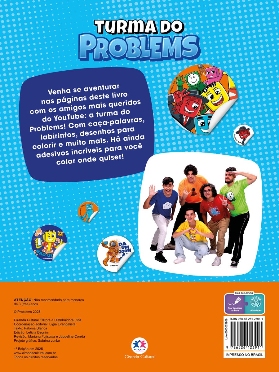 O dia a dia do maior canal do Brasil é repleto de brincadeiras, desafios e muito bom humor. Venha se divertir na companhia de Problems, fazendo diversos passatempos. Com desenhos para colorir, caça-palavras, labirinto e muito mais!
