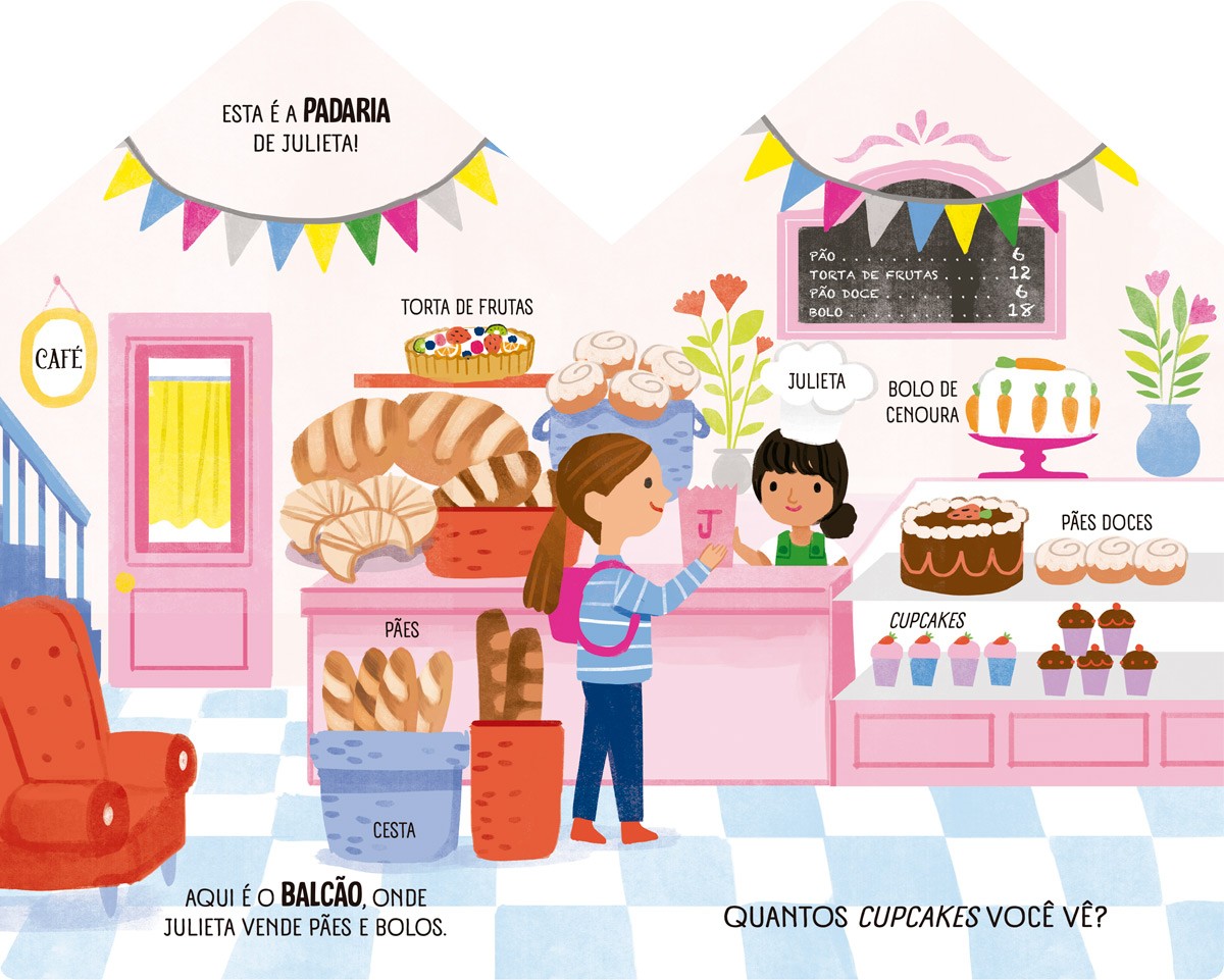 Venha conhecer a padaria de Julieta e aprender muitas palavras com este livro colorido e cheio de ilustrações.