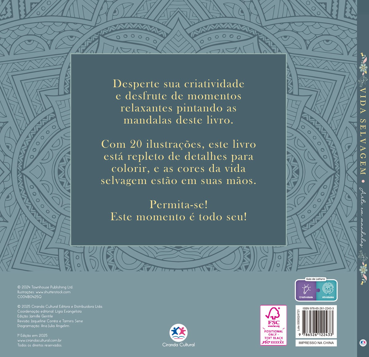 Desperte sua criatividade e desfrute de momentos relaxantes pintando as mandalas deste livro. Com 20 ilustrações, este livro está repleto de detalhes para colorir, e as cores da vida selvagem estão em suas mãos. Permita-se! Este momento é todo seu!