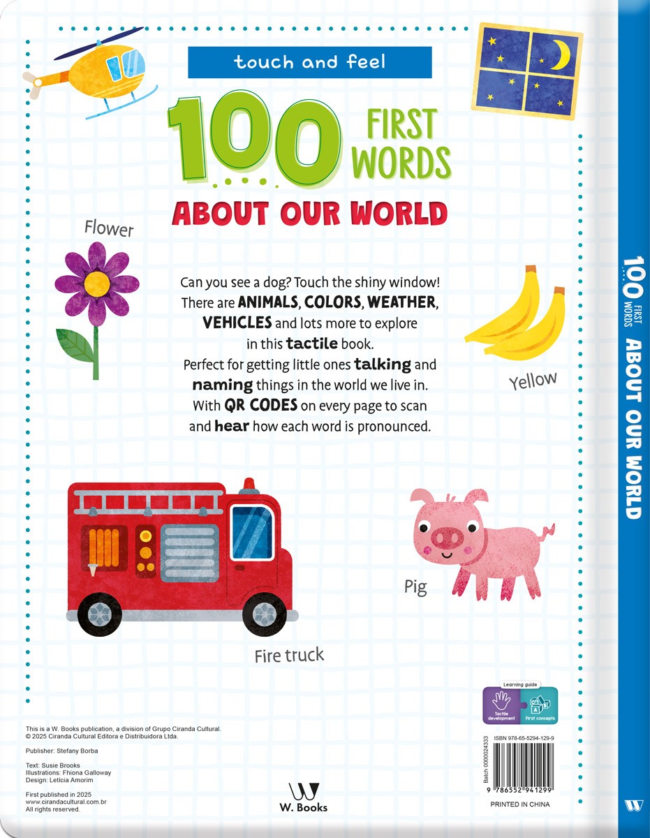 Perfect for getting little ones talking and naming things in the world we live in. With QR CODES on every page to scan and hear how each word is pronounced.