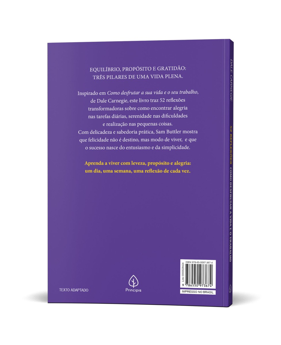 EQUILÍBRIO, PROPÓSITO E GRATIDÃO: TRÊS PILARES DE UMA VIDA PLENA. Inspirado em Como desfrutar a sua vida e o seu trabalho, de Dale Carnegie, este livro traz 52 reflexões transformadoras sobre como encontrar alegria nas tarefas diárias, serenidade nas dificuldades e realização nas pequenas coisas. Com delicadeza e sabedoria prática, Sam Buttler mostra que felicidade não é destino, mas modo de viver, e que o sucesso nasce do entusiasmo e da simplicidade. Aprenda a viver com leveza, propósito e alegria: um dia, uma semana, uma reflexão de cada vez.