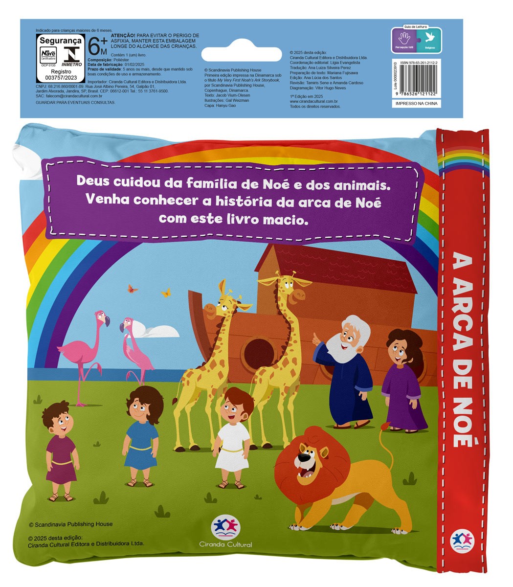 Deus cuidou da família de Noé e dos animais. Venha conhecer a história da arca de Noé com este livro macio.